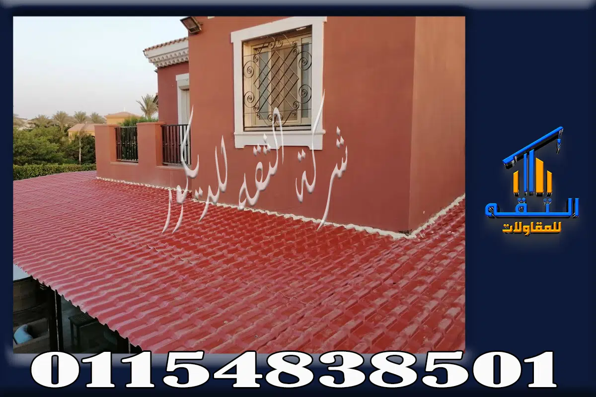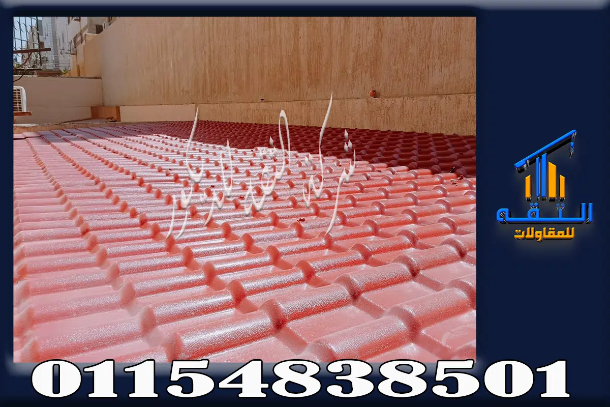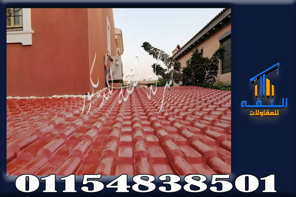تركيب القرميد البلاستيك الاحمر علي سطح فيلا